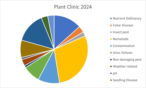 To contact Kate please email enquiries with photographs to plantclinic@bbro.co.uk. The plant clinic team will then assess your problem and advise you on what samples to send to the lab.