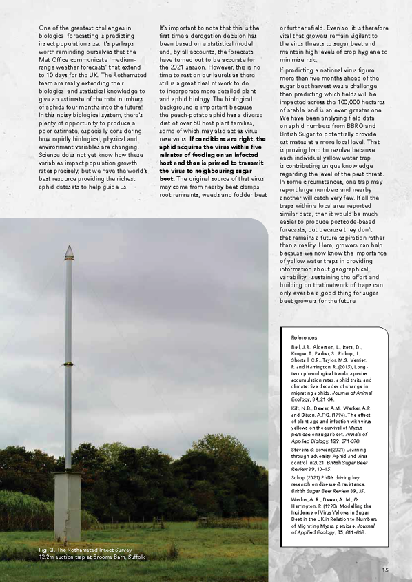 BBRO work closely with Rothamsted Research to assess the level of virus threat expected per year and the estimated arrival of M. persicae and Macrosiphum euphorbiae (the primary aphid vectors of virus yellows) into the sugar beet crop.