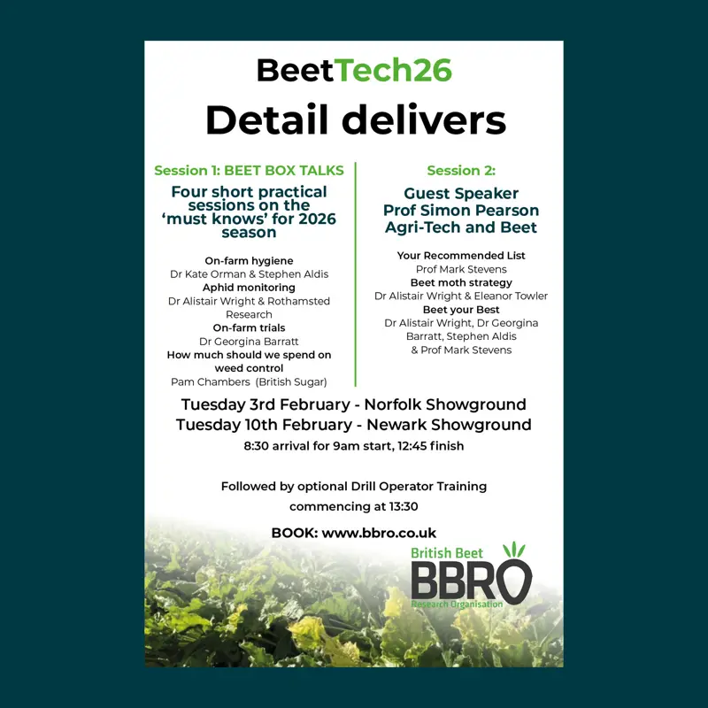 Our annual BeetTech events will take place on 3rd February 2026 at Norfolk Showground and 10th February 2026 at Newark Showground.