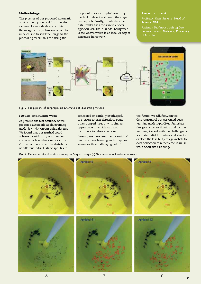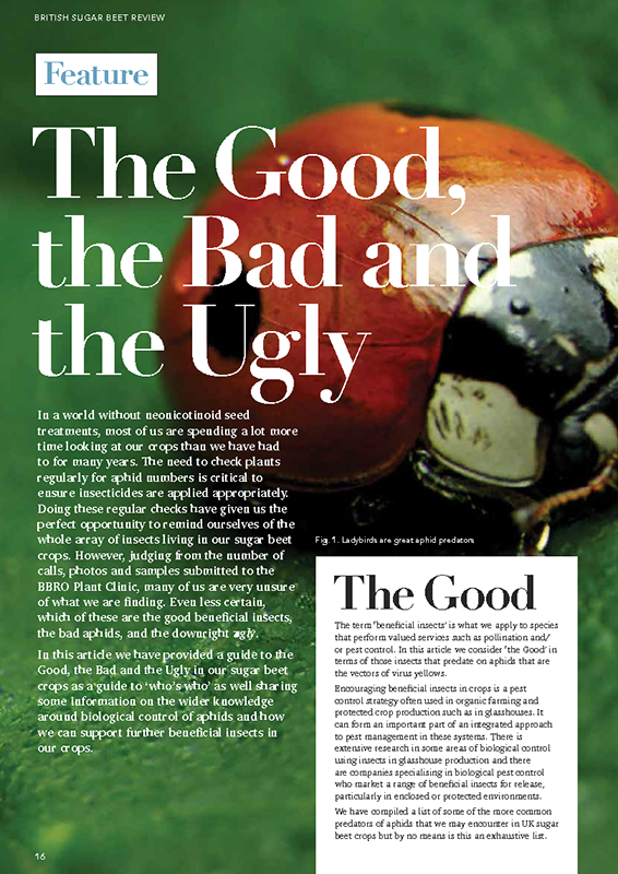 Once flight and risk is determined we work with British Sugar, several growers and agronomists to monitor aphids across the four sugar beet factory areas through the spring and early summer. The data received is fed into the BBRO aphid survey (Access the Aphid Survey Dashboard) and used to form guidance issued via our Advisory Bulletin and other communication outlets.
