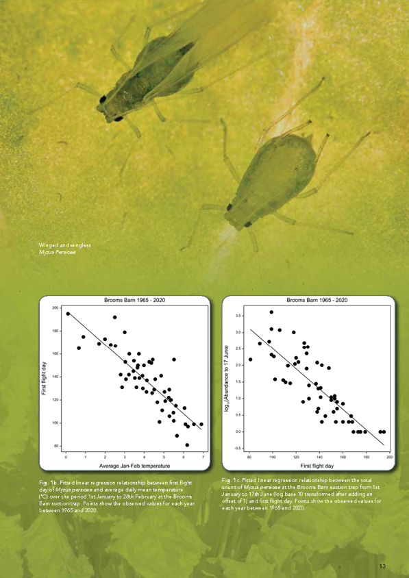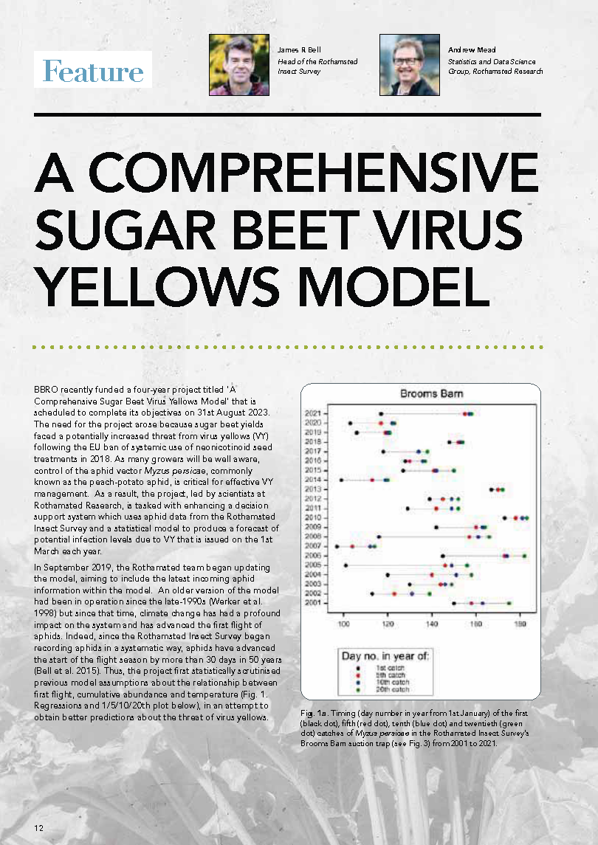 BBRO work closely with Rothamsted Research to assess the level of virus threat expected per year and the estimated arrival of M. persicae and Macrosiphum euphorbiae (the primary aphid vectors of virus yellows) into the sugar beet crop.