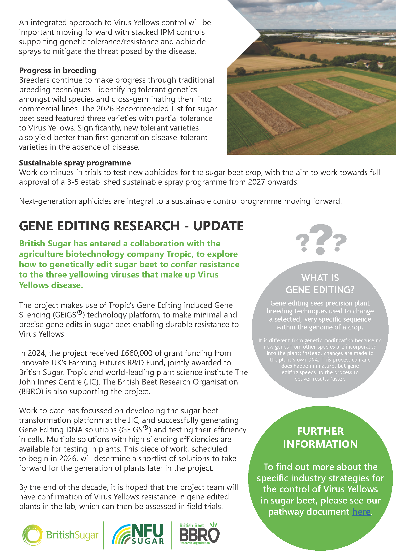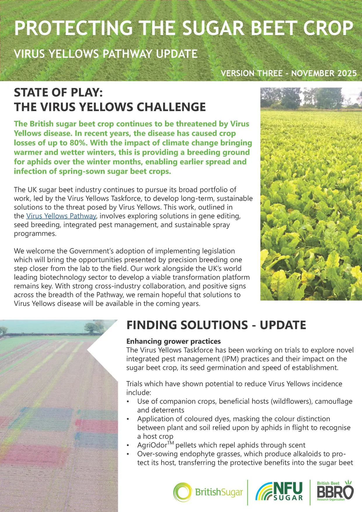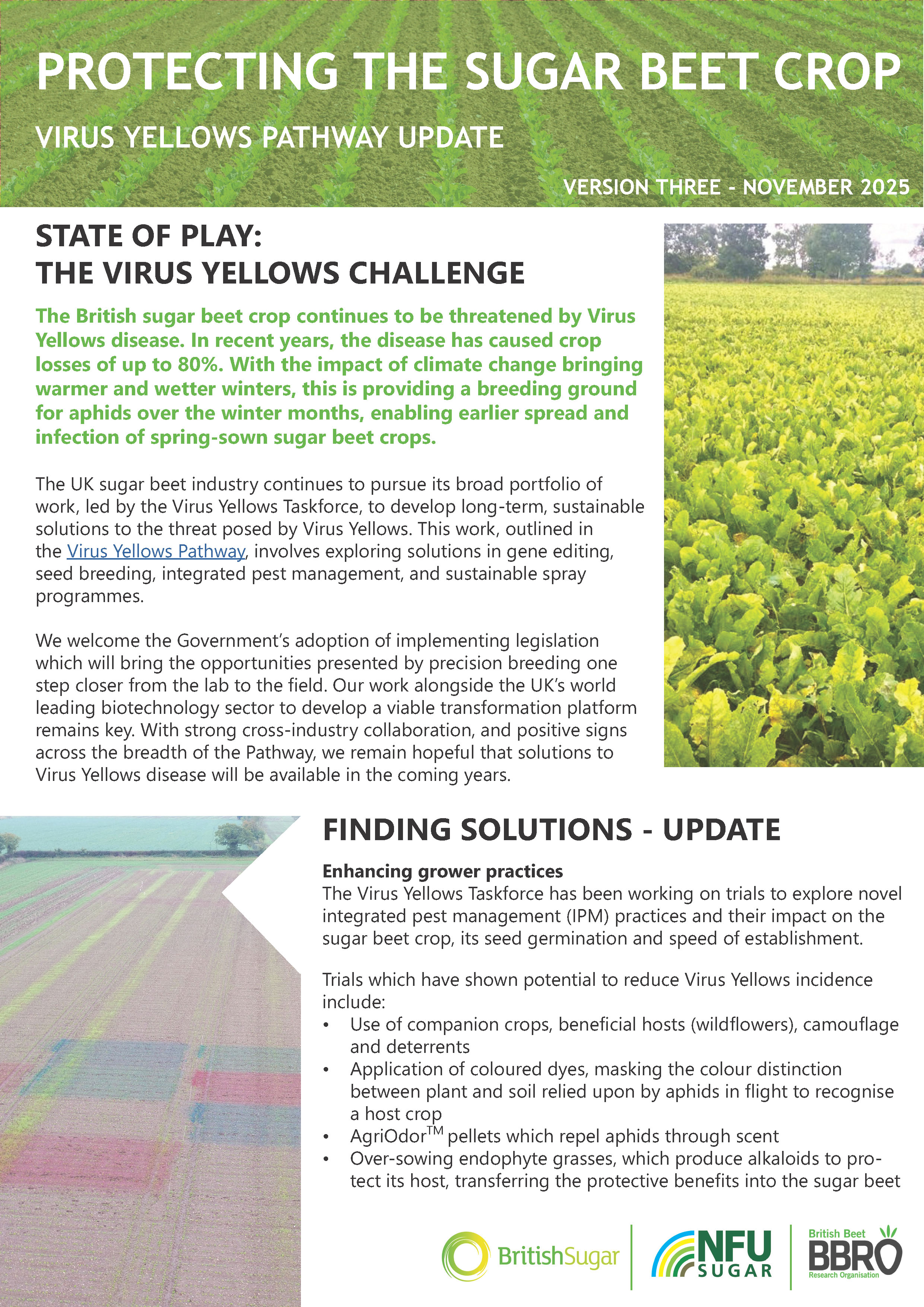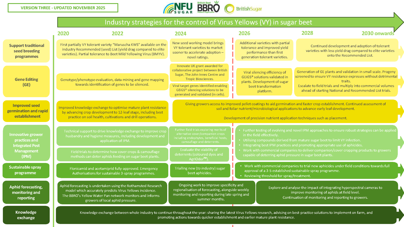 BBRO work closely with Rothamsted Research to assess the level of virus threat expected per year and the estimated arrival of M. persicae and Macrosiphum euphorbiae (the primary aphid vectors of virus yellows) into the sugar beet crop.